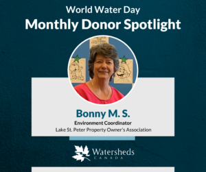 March 22nd is World Water Day! For this special occasion, we want to highlight an equally special someone who has made a powerful commitment to conserving freshwater here in Canada: one of our esteemed monthly donors, Bonny. “My volunteer work with our lake association started with one issue, and then it grew from there!” she said, reflecting on the beginning of her journey as Environment Coordinator for the Lake St. Peter Property Owner’s Association in Ontario. Melissa Dakers of ... Read More