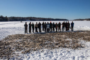 Watersheds Canada’s fish habitat expert, Melissa Dakers, proudly keeps adding up her charity’s fish habitat projects. “Including the work on Lake Kennebec on February 4th, Watersheds Canada has completed 77 fish habitat projects and 27 of those are restored and enhanced walleye spawning beds. Today’s project was funded by Safari Club International – Ottawa Valley Chapter, and Springwood Cottage Resort.”