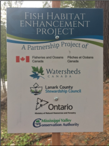 This entire project would not have been possible without the support of the many partners and volunteers who made it successful. It was a combined effort involving the Lanark County Stewardship Council, Lanark & District Fish & Game Conservation Club members, the Ministry of Natural Resources & Forestry staff & Youth Stewardship Rangers, Mississippi Valley Conservation Authority, and Watersheds Canada. Special thanks to the Department of Fisheries and Oceans Recreational Fisheries Conservation Partnerships Program for the financial support in the competition of the Waddle Creek Restoration Project.