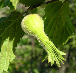 The Beaked Hazel is a medium-sized, deciduous shrub which can grow in a variety of soil, light and moisture conditions. This shrub species thrives in partial shade conditions. The Beaked Hazel is multi-stemmed with loosely spaced branches. This species produces catkins during the fall and small red flowers during the spring. Pollinated flowers turn to large, round nuts, which ripen mid-fall, and are covered in a bright green husk. These nuts provide a food source for many bird and mammal species including humans. The Beaked Hazel is one of the hardiest of hazel species and is commonly used for naturalizing and landscaping purposes.Scientific Name: Corylus cornuta