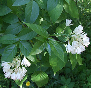 The Bladdernut is a small, fast growing deciduous shrub. It occurs naturally along shorelines and edges of woodlands throughout Eastern North America. This species produces light green, compound leaves with three leaflets arranged oppositely along dark green, white dotted branches. Small, bell-shaped, white flowers bloom between April and May. During late summer, the flowers have turned into bladder-shaped, papery fruit which encapsulate the plant seeds. The fruit is light green in colour, turning brown during the fall and can persist on the shrub throughout the winter. This shrub is used frequently in landscaping as it can tolerate a variety of soil, light and moisture conditions. This species thrives in partial to full shade and moist soil conditions. Left alone, the bladdernut can form dense thickets but is easily managed and maintained with minor pruning.Scientific Name: Staphylea trifolia