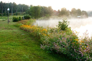 A restored shoreline with hundreds of native wildflower and shrubs. Photo: Watersheds Canada.